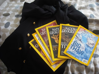 Last night was spent reading old copies of National Geographic which I had not looked at in a long time. You can also see my new\old blazer from the local charity shop for just £4.00 !! Yes i know , nice and cheap and the fact it is navy blue and has nautical buttons just tops it off nicely !! I never usually find blazers in the charity shops round here, well at least ones that I like ! So it was a nice find ! It is a little big well very big, but I love the way it sits and means its a little longer than it would normally be !
