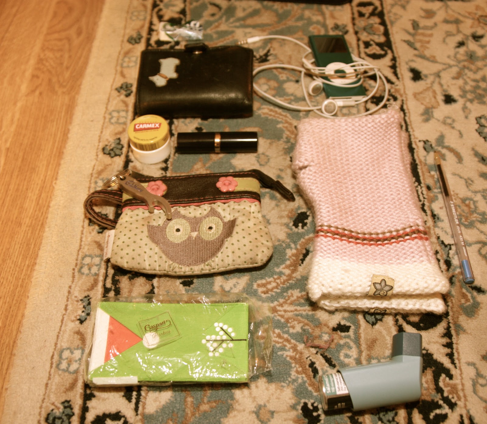 This is what was in my bag at the moment I was taking these photos. Not so exciting as you can see, but all the things I generally need were knocking about in this pretty new bag.