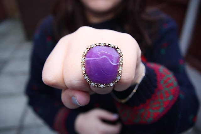 I wore this Primark ring on Friday 2nd December in Manchester, it was a very chilly day and I had my vintage wool jumper on over a dress. This Primark ring was about £2.00, it’s one of the small collection of things I have from Primark (apart from PJs) and it is actually very good quality and hasn’t turned me green…yet. I have had jewellery from UO which has turned me green within a matter of weeks so I am always careful when buying jewellery. I think I would cope if this £2.00 ring does turn me green, for now I will enjoy wearing it.
