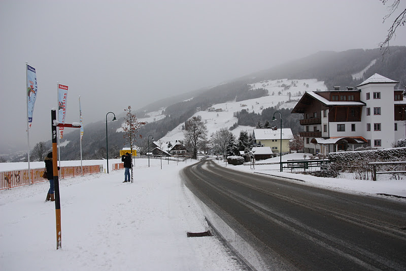 Most normal people would see the snow, notice that the mountains are hidden by snow clouds and take the car back to the rental company. Oh no ! We decided we would jump in the car and and visit a few towns. We first went up the hill to the next town to have a walk around and get some amazing views of the snow.