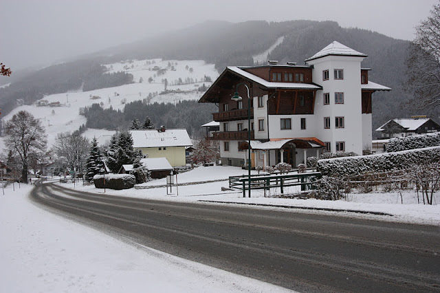 So I told you that we had a snow scare during Austria Part for and now I am going to tell you about the second snow scare we had. We left the restaurant and headed for the car, we put the sat nav on and made our way out of the town, or so we thought. A few minutes later we found ourselves half way up a mountain and with no way of turning back, I should add that the snow was falling heavier at this point. We kept heading up round the mountain, all I wanted to do was get out of the car and walk but this was not going to happen. As we wound round and round the mountain I kept looking out of the window and seeing the big drop next to us, it got to the point where we were higher than the tops of the trees and those Alpine trees grow very high. Finally we found a place to turn around, which was scary as we had to head towards the edge to be able to turn around. Another car ( the only other which passed us ) shouted out the window that we need to be very careful as we didn’t have chains on the wheels of our car. We very slowly drove back down the mountain, I think the car slipped a tiny bit once, but luckily it was with the wall next to us. Being next to the wall on the way down made it much easier than looking over at the big drop on the way up. We were very lucky to have Richard driving and he kept us all safe and managed to keep us all calm (ish) whilst we were trying to get back down to where we were safe. It was honestly a very scary experience and one I wouldn’t want to go through again !