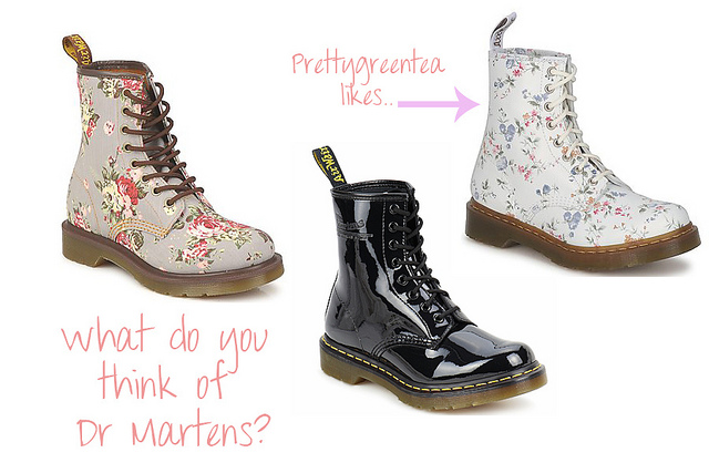 Anyway, the point of this post is to talk to you about Dr Martens. I really like them on other people but I sometimes think they can be a little harsh or chunky to go with the outfits I wear. I have found three pairs below which I really like. I am keen to get the 1460 Print Floral print because I think the pattern is really pretty and I think they would look fab with white tights or various pastel shades during the summer.