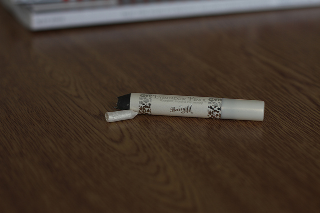 This BarryM eyeshadow pencil was such a let down. Not long after starting to use it I noticed that it kept breaking. Whenever I sharpened the pencil it would just continue to break untill the eyeshadow fell out of the pencil casing. I was pretty gutted about this because it was a lovely shimmery shade and when I actually managed to apply it to my eyelids it would glide on easily and stick around for a good few hours before it looked like a top-up was needed.