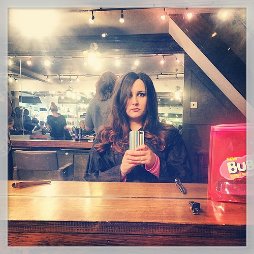 I called a few places in Norwich (I like to book on the day I go) and ended up going to The Egg. I’d heard a lot of good things about it since moving to Norwich and felt pretty confident. Andrea listened to me babble on about the reasons why I normally go for a full fringe, why I didn’t think I’d go for one this time and then quickly flip through a few photos on Pinterest. She snipped away all the dead hair, added in a few layers and dried it to perfection.