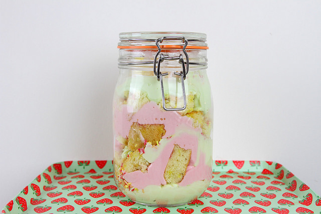 At the start of the week I decided I wanted to make a cake. I was keen to try something new and spent ages trying to figure out if I could stick a Kilner jar in the oven. In the end I decided against it, I didn’t want to end up with an oven filled with glass. I decided to play it safe and put together a traditional cake in a jar. You know, the kind people make when they want to use up left over cake.