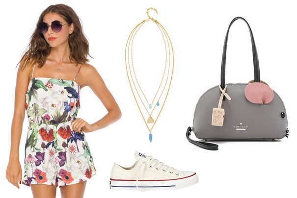 Marley Strappy Playsuit | Stone Layered Necklace | White Converse | Mouse Handbag |