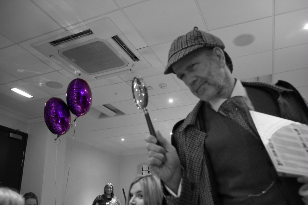 A few moments later Sherlock Holmes ran into the room. He instantly had everyone laughing and quizzed us on what we had seen. He then gave us the low down on how everything would work throughout the meal. He assured us he would be there to help guide us through the murder mystery.