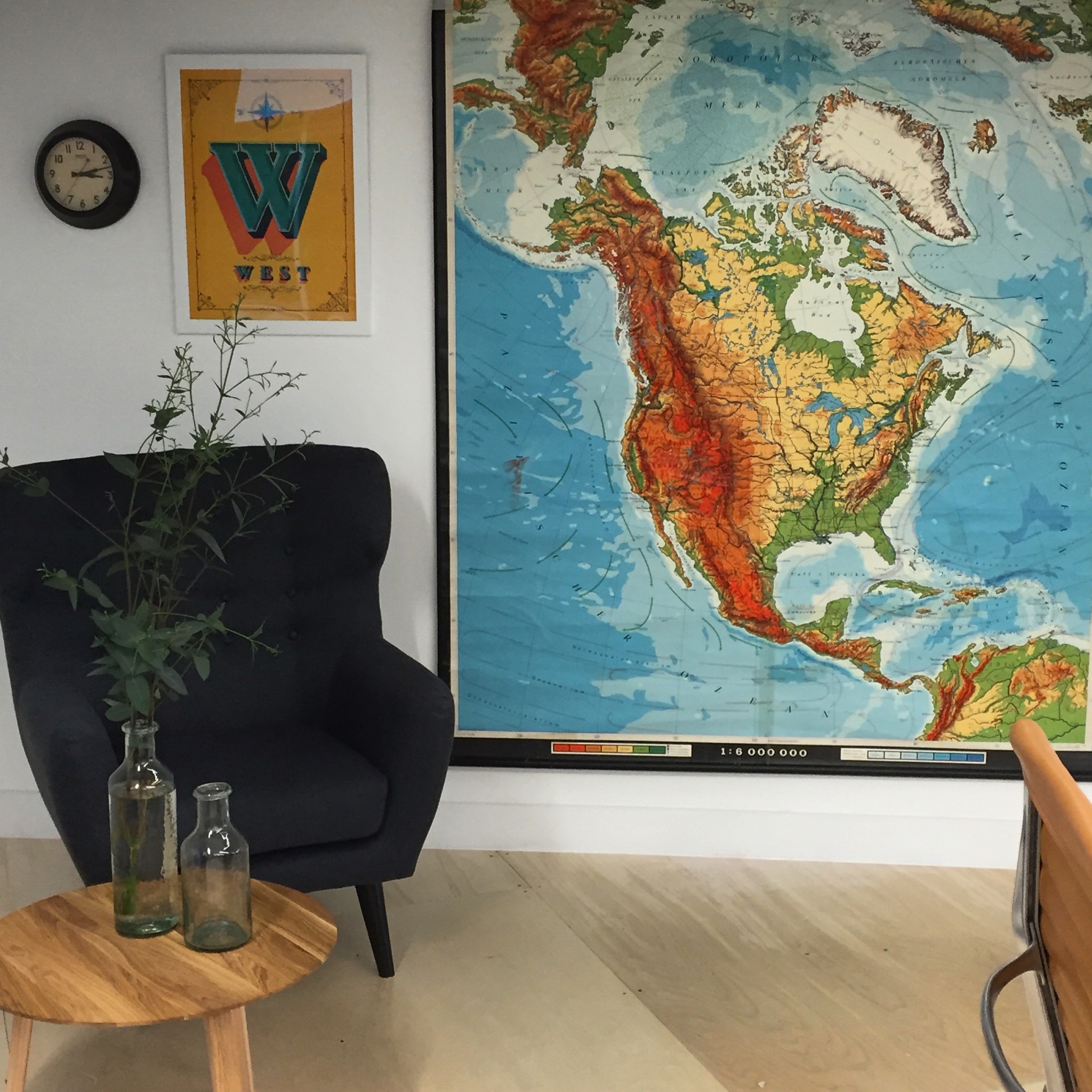 We were given a brief from the designer’s to source and supply vintage and characterful pieces for the welcome, social and meeting spaces throughout the office. We went out into the markets sourcing leather sofas, armchairs, school chairs and various accessories that reflected the personality of the brand. It was hugely satisfying to see it all in situ, in the new space.
