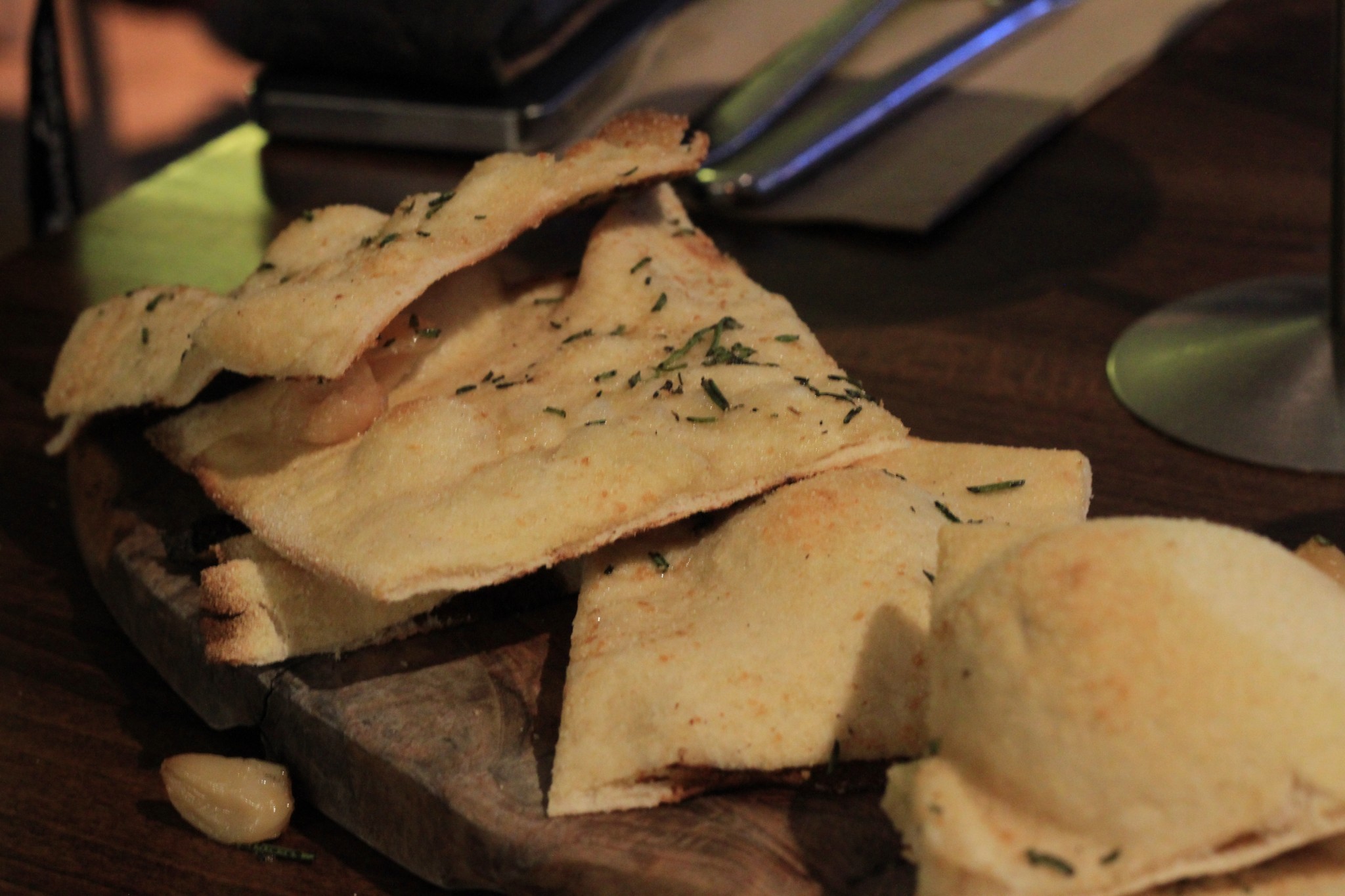 The garlic bread was was thin, crispy and delicious. I think that’s all down to the sprinkling of rosemary on top and roasted hunks of garlic.