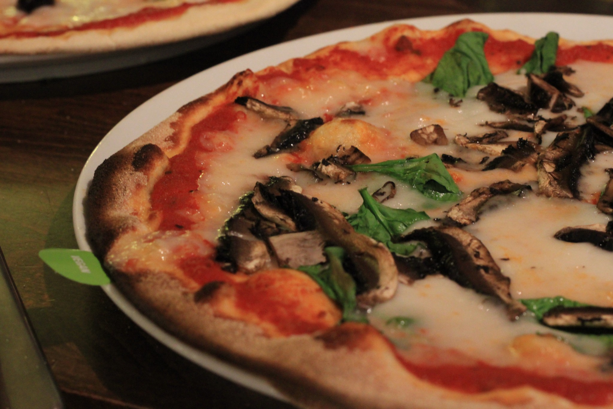 For our mains we each picked a pizza from the vegan menu. The idea is that you have your base with dairy free cheese (Mozzarisella) and then you customise it with whatever you like. We decided to stick to the vegan toppings but there’s no reason you couldn’t go for something with meat.