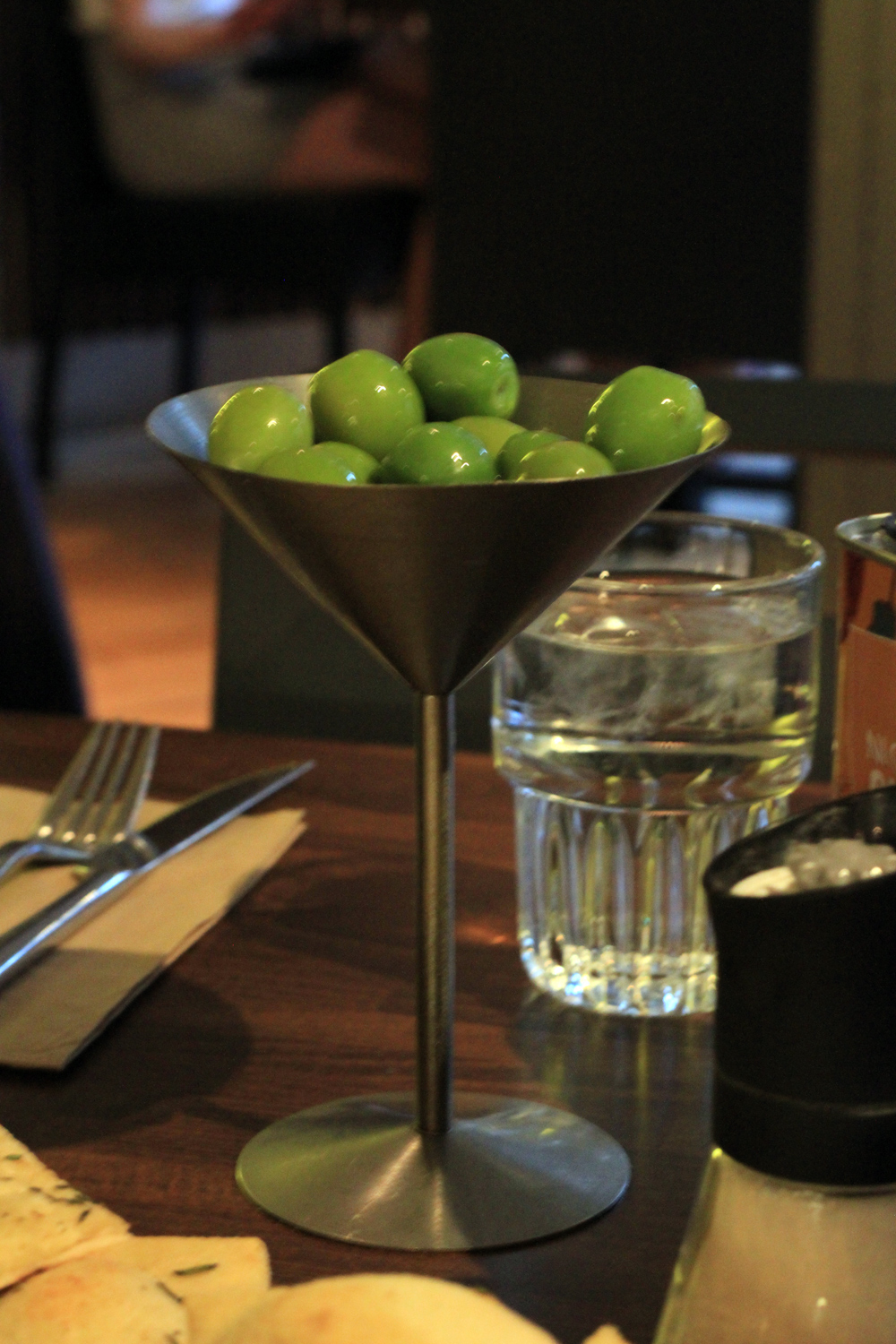 To start our meal we had olives and garlic bread. The olives at Zizzis are always very tasty and this time was no different. We were served a big mountain of green olives in a tall martini glass. The olives were fresh and very tasty.