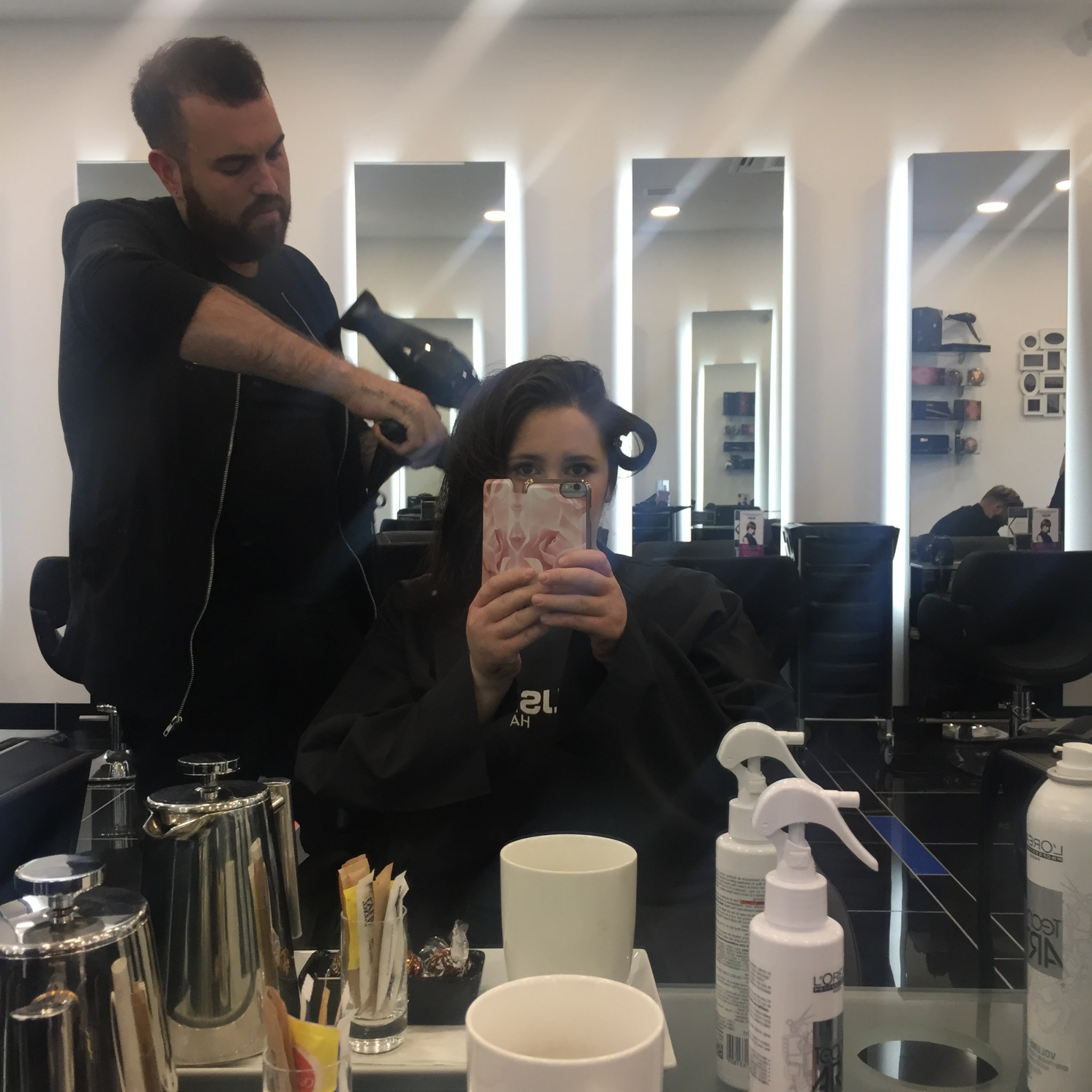 I always ask for my hair to be blow dried, it just looks so much better with extra volume and curls. Toby used some lovely products on my hair from the L’Oréal Professionnel Techni Art Range. He talked me through everything he used and even gave me some tips to style my hair at home. One of my favourites was the Root Lift Spray Mousse. You simply spray the product into the roots of your hair and then style. Much easier and more effective than the ones you spray into your hand.