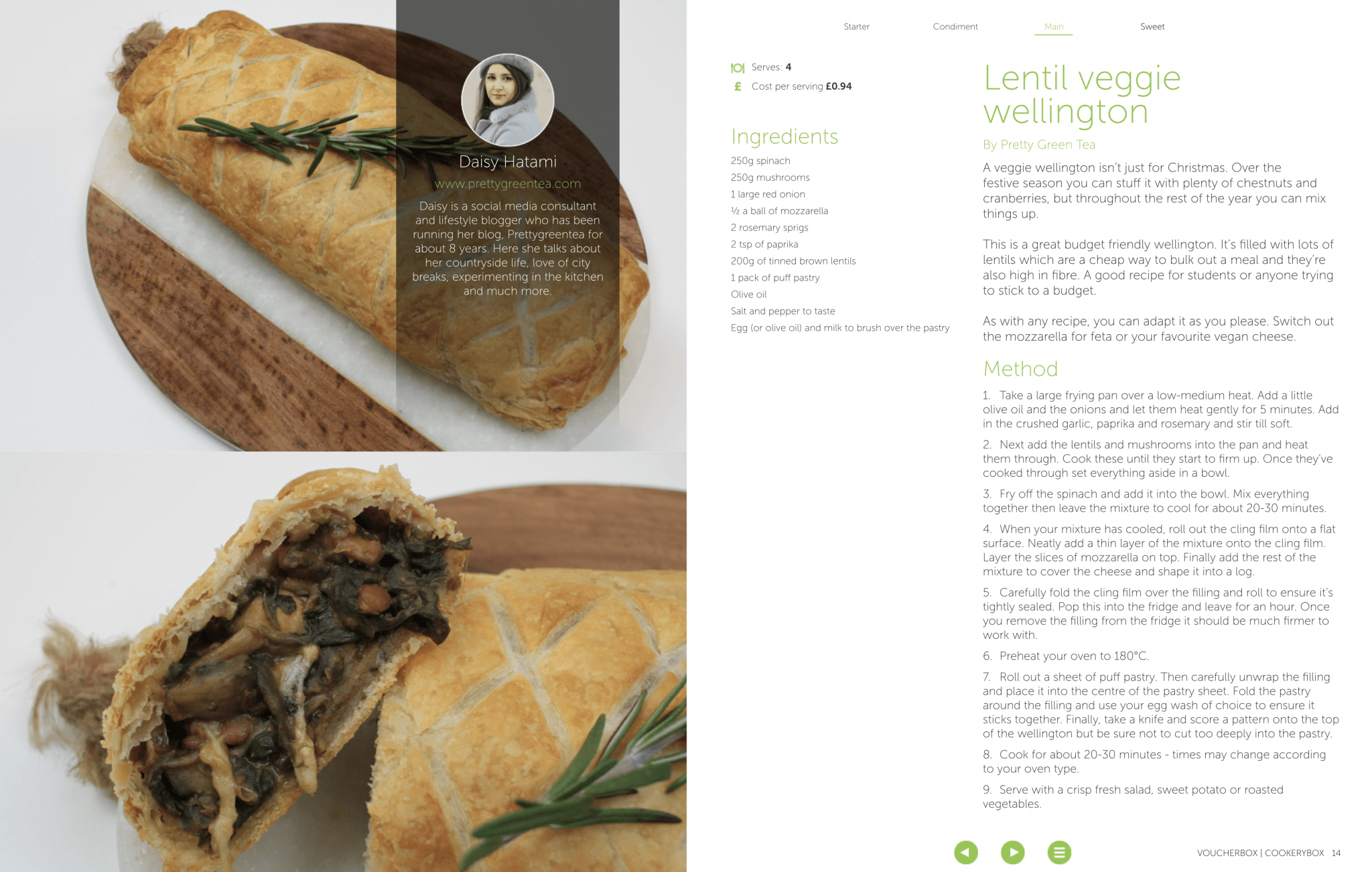 Along with a bunch of other bloggers we were asked to share our favourite low-cost recipes for the e-cookbook. After a lot of thought I decided to go with my Lentil Veggie Wellington (find it on page 14) which is cheap and pretty simple to make. A veggie wellington is often made at Christmas with lots of chestnuts and cranberries. I created my Lentil Veggie Wellington to use throughout the year and packed it full of tasty lentils to ensure that it’s filling. It’s a really good dish to make when you have friends visiting or for when you need a comforting meal on a Friday night.