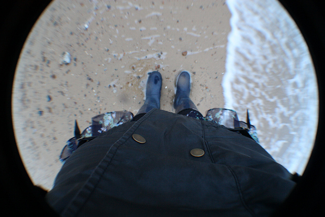 Walking in the rain on Southwold beach